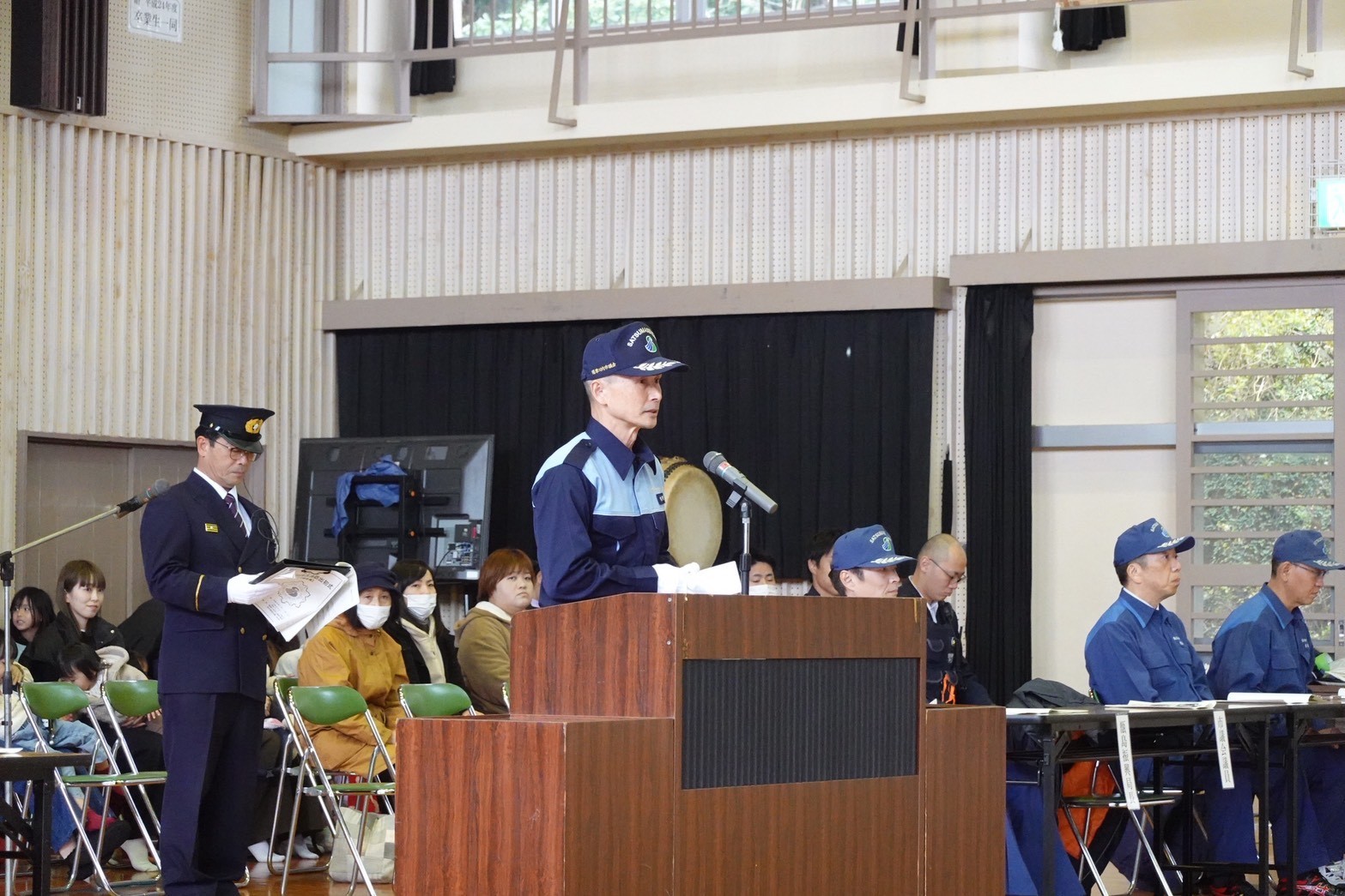 昨日11日に薩摩川内市消防出初式が上甑会場と下甑会場で開催されました。強い冬型の影響でみぞれ交じりの強風が吹く中での開催であったことから、それぞれ会場を里中学校体育館と長浜小学校体育館に変更し実施されました。