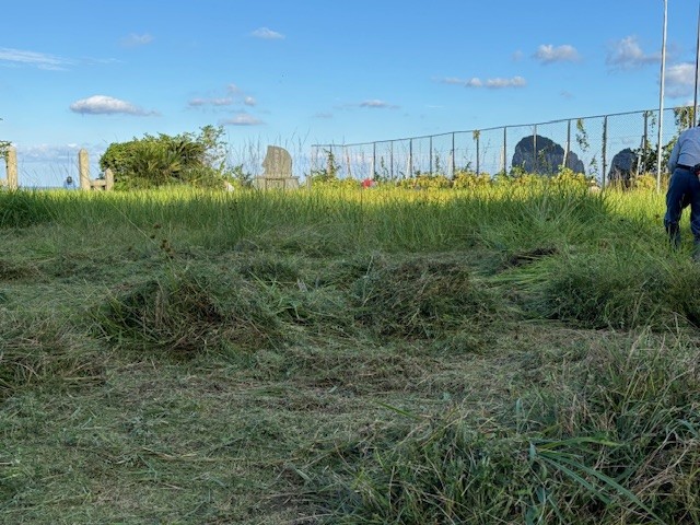 ところが、今日はその前に一仕事が控えていました。旧西山小学校校庭の草刈りです。例年、グランドゴルフで使用するため定期的に除草がされていましたが、今年は猛暑でする人がほとんどなく伸び放題になっていました。瀬々野浦住民総出で早朝から草刈り、清掃を行った結果、見事にきれいになりました。(了)