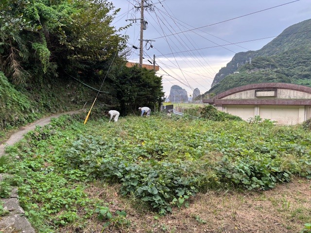 昨日午前8時から西山(瀬々野浦)地区コミュニティで「かいもうち(さつまいも掘り)」がありました。参加者はコミュニティの中核をなす70代~80代前半の皆さん。
