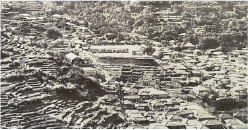旧西山小学校(写真中央)と旧西山中学校(小学校の左下の大きな屋根)