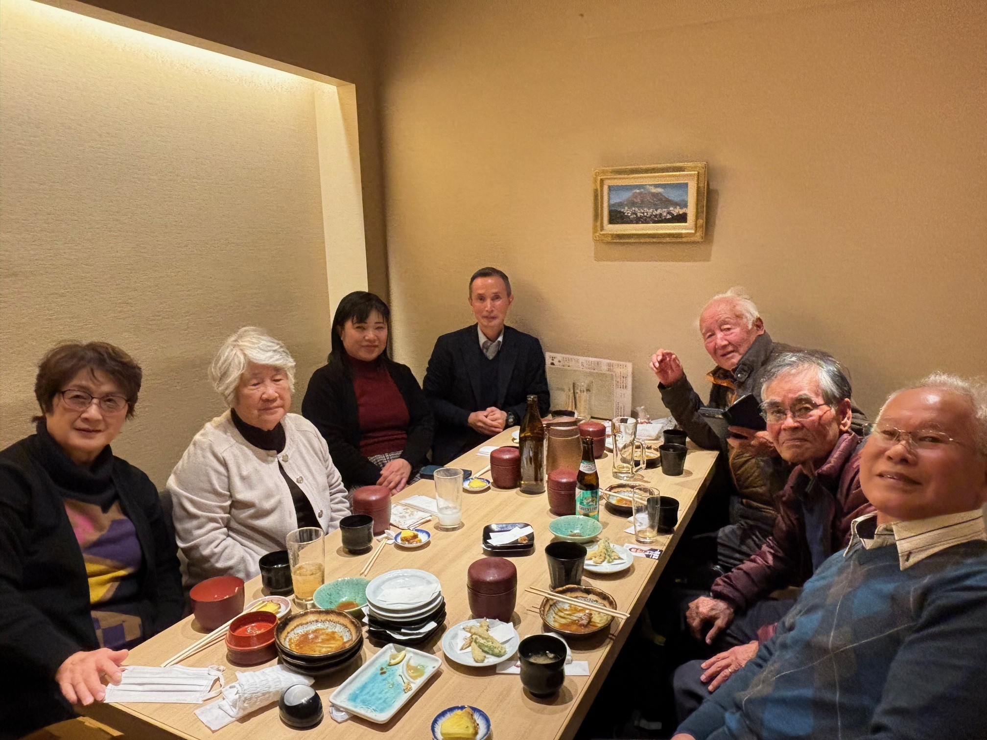 このようにミニ西山会は昔話に花が咲きとても楽しく充実したものとなりました。私は兄姉が多かったことから当時の先生方の話を聞いたり写真を見たりで先生方のお顔は記憶にはありましたが、当時は3,4歳ぐらいでしたので先生方と直接お話しするのは今回が初めてでした。これも妻の両親(安川先生夫妻)とのご縁があったからだと感謝しています。妻の両親は母58歳、父63歳で年齢的には丁度今の私と妻ぐらいの年齢で既に亡くなっています。この会に参加できていればどんなに喜んだことか。